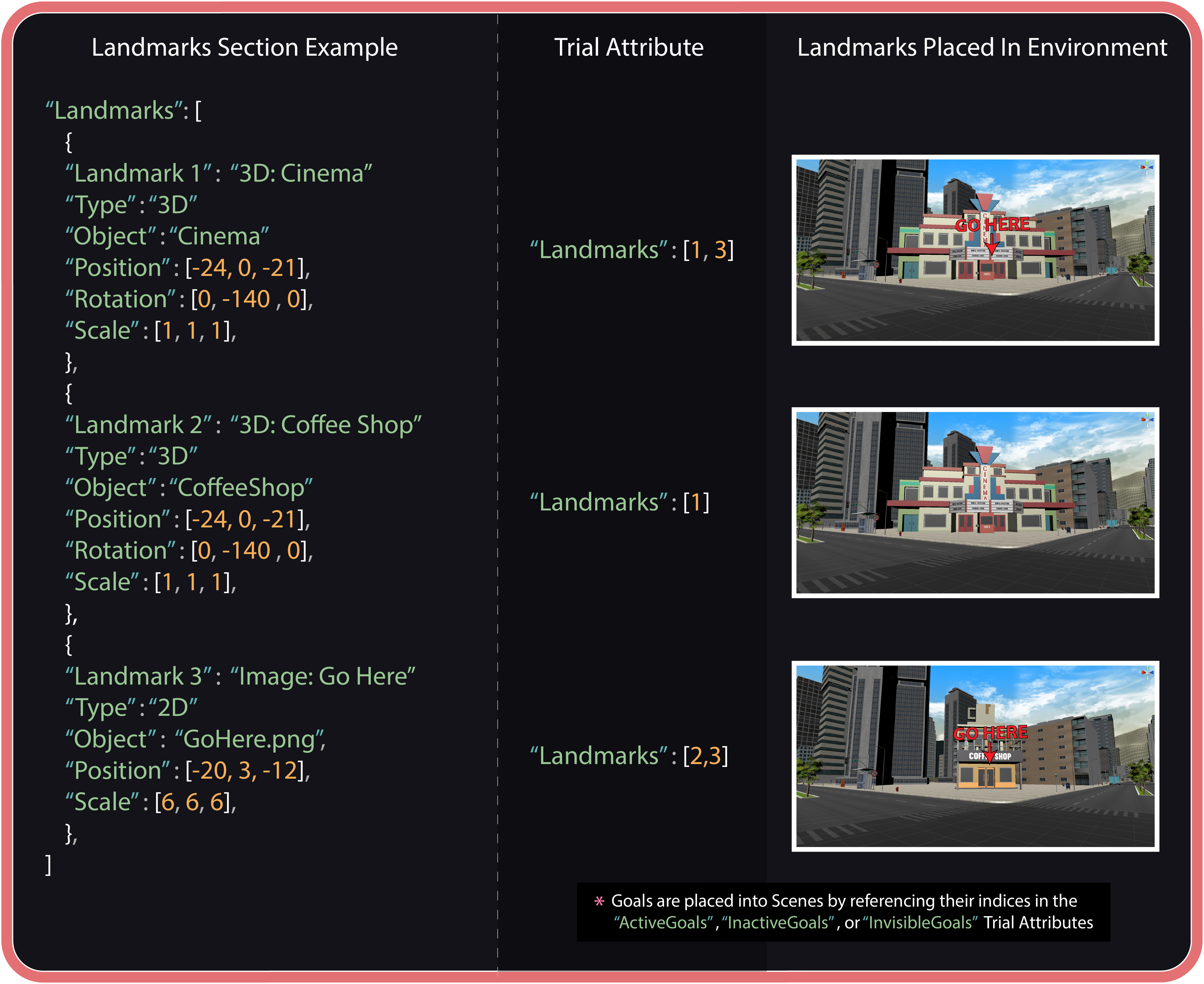 | Goal/Landmark # | “Description” | Can be added to keep track of indices and used as a reference when creating Task Trials. |